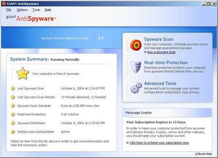Giant has made an impressive entry into the antispyware market with the introduction of their novel "SpyNet" technology. Giant users benefit from the combined learning of hundreds of thousands of computer users the world over. When new spyware is detected by just a few people on the network, everyone gets protected. Despite the newness of the product, it is already proving very effective. The latest version claims to have over 1,000,000 signatures in their database so far - over thirty times what any other anti-spyware vendor currently claims. While obviously this number is not an even comparison to other vendors' claims (and they never are), what is obvious is that Giant's product offers extremely effective protection against spyware.